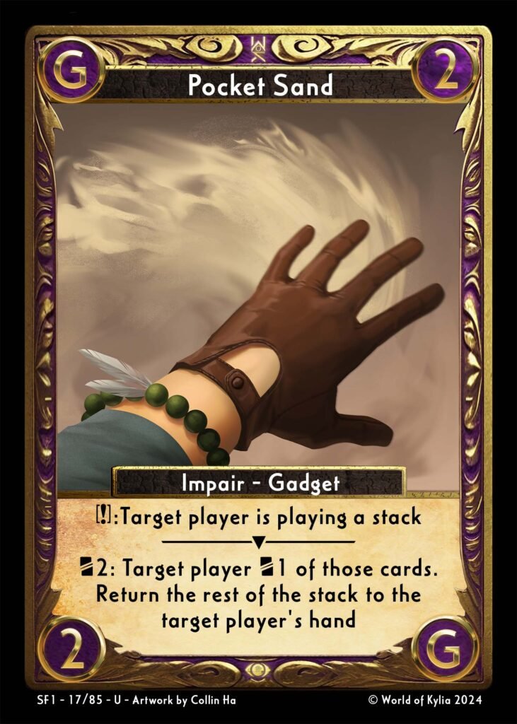 When a card stack is placed, reaction windows are resolved in turn order, starting with the turn player. Players may flip Pocket Sands if eligible during their window.