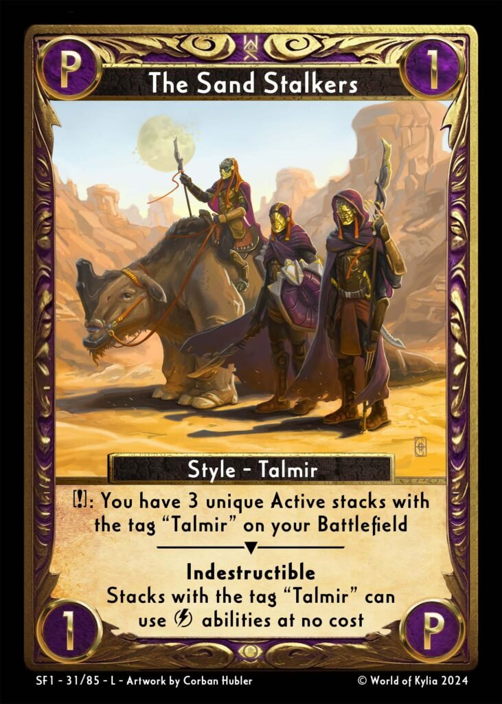 [1a] Reaction: You have 3 unique Active stacks with the tag “Talmir” on your Battlefield